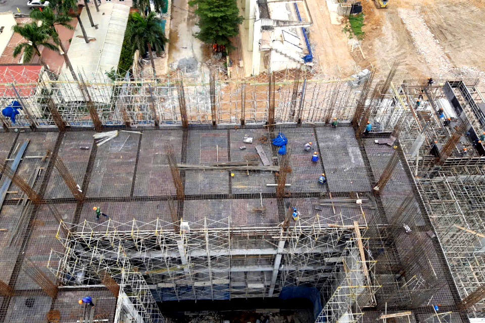 Trên công trường thi công Dự án Tổ hợp văn phòng làm việc và nhà ở cho thuê số 5 Thành Công, Ba Đình, Hà Nội
