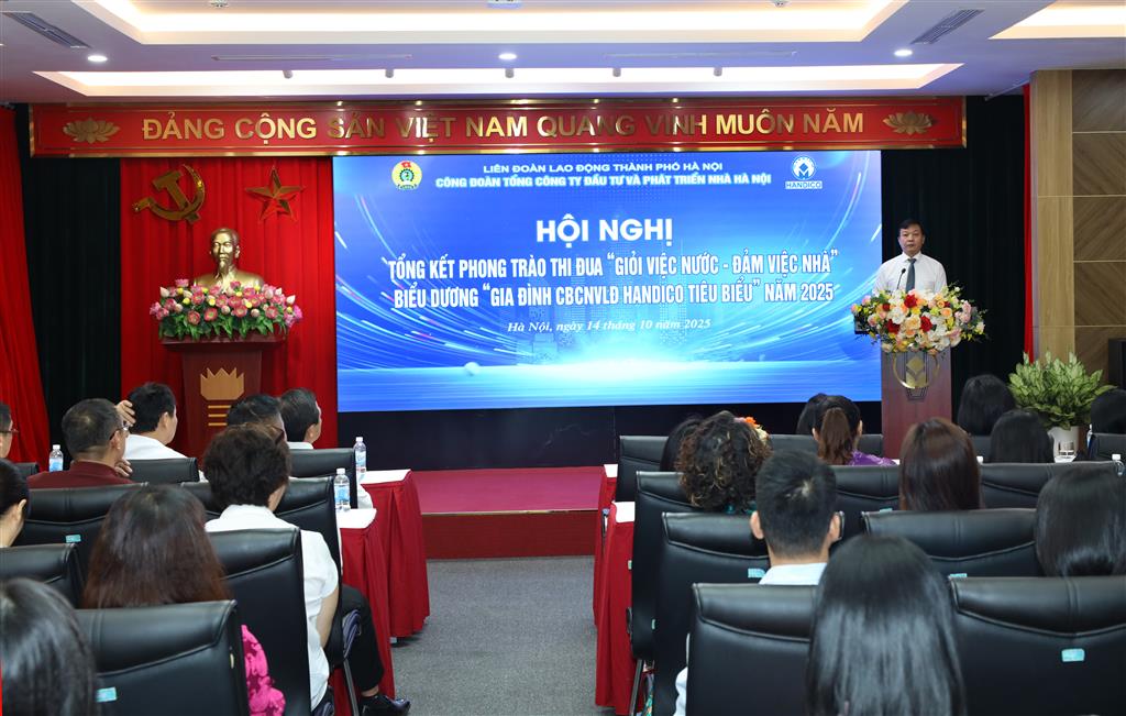 (HANDICO) – Ngày 14/10/2025, Công đoàn Tổng công ty Đầu tư và Phát triển nhà Hà Nội (HANDICO) tổ chức Hội nghị tổng kết phong trào thi đua “Giỏi việc nước - Đảm việc nhà”, Biểu dương “Gia đình CBCNVLĐ HANDICO tiêu biểu” năm 2025. Sự kiện vừa là dịp để tôn vinh những nữ CBCNVLĐ HANDICO giỏi giang, tận tụy trên mọi lĩnh vực công tác, vừa ghi nhận, tri ân những gia đình tiêu biểu của HANDICO, góp phần tạo nên nền tảng vững chắc cho sự phát triển của Tổng công ty.