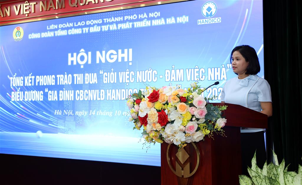 Lãnh đạo Tổng công ty biểu dương những tập thể, cá nhân tiêu biểu trong phong trào “Giỏi việc nước - Đảm việc nhà”, “Gia đình HANDICO tiêu biểu”, coi đây là minh chứng sinh động cho hiệu quả các phong trào thi đua và vai trò tích cực của tổ chức Công đoàn. Đồng thời, bày tỏ mong muốn các cấp Công đoàn tiếp tục đổi mới nội dung, phương thức hoạt động, tạo động lực để nữ CBCNVLĐ phát huy hơn nữa năng lực, trí tuệ và bản lĩnh, góp phần xây dựng HANDICO ngày càng phát triển bền vững. Lãnh đạo Tổng công ty sẽ tiếp tục ủng hộ, tạo mọi điều kiện tốt nhất để hoạt động Công đoàn và phong trào Nữ công Tổng công ty ngày càng đi vào chiều sâu và hiệu quả.